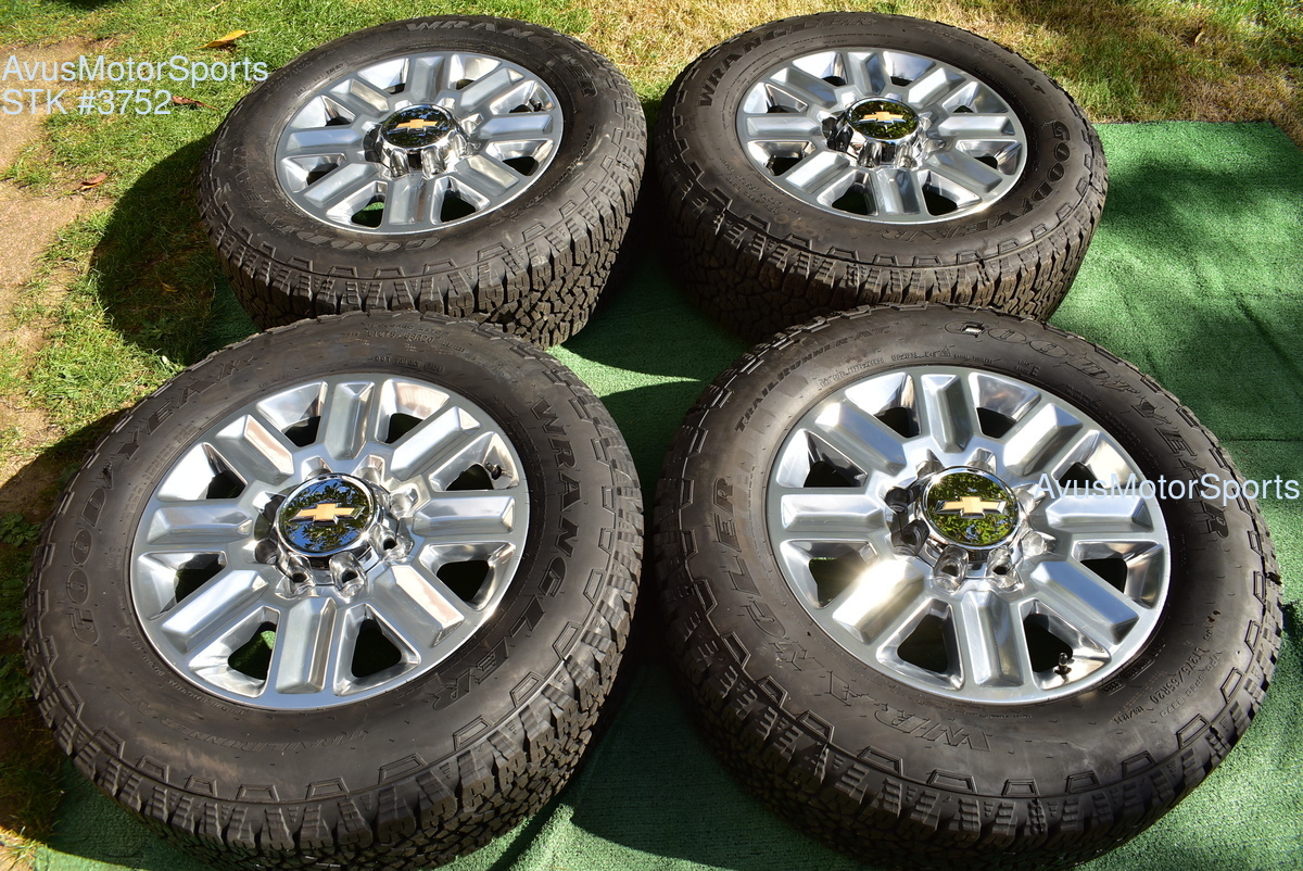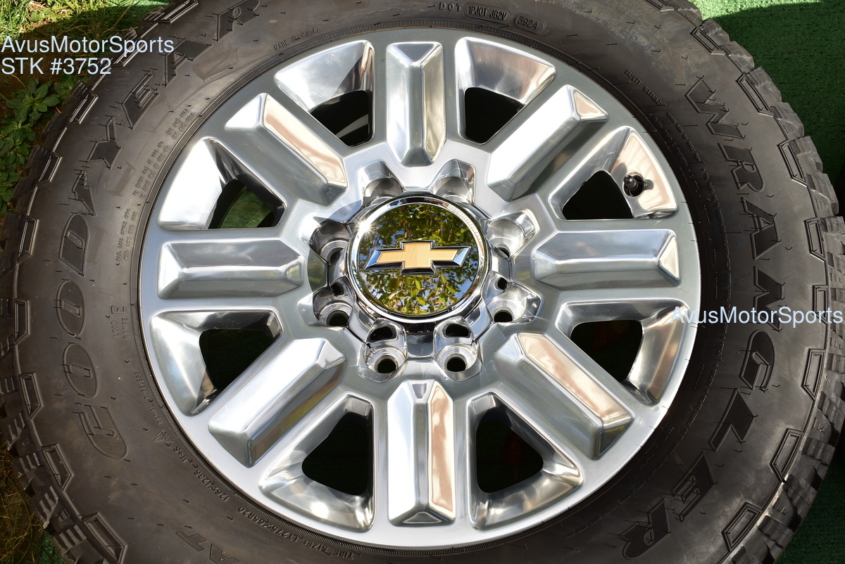 This listing is for a set of (4) 2025 Chevrolet Silverado HD 2500 20" OEM genuine factory wheels NOT REPLICA with Goodyear LT275/65R20 tires.