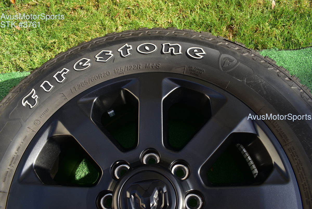 This listing is for a set of (4) 2025 Dodge Ram 2500 OEM 20" Wheels & Firestone A/T LT285/60R20 tires.
