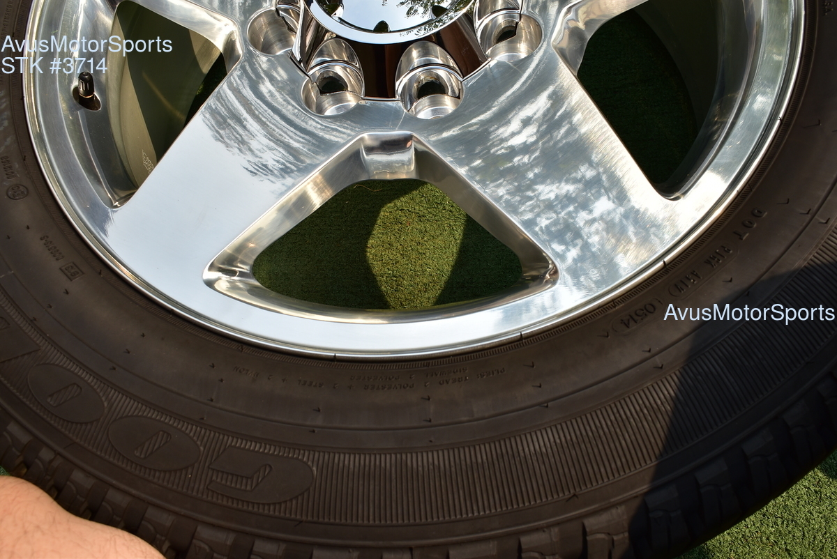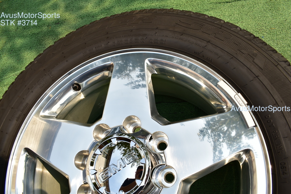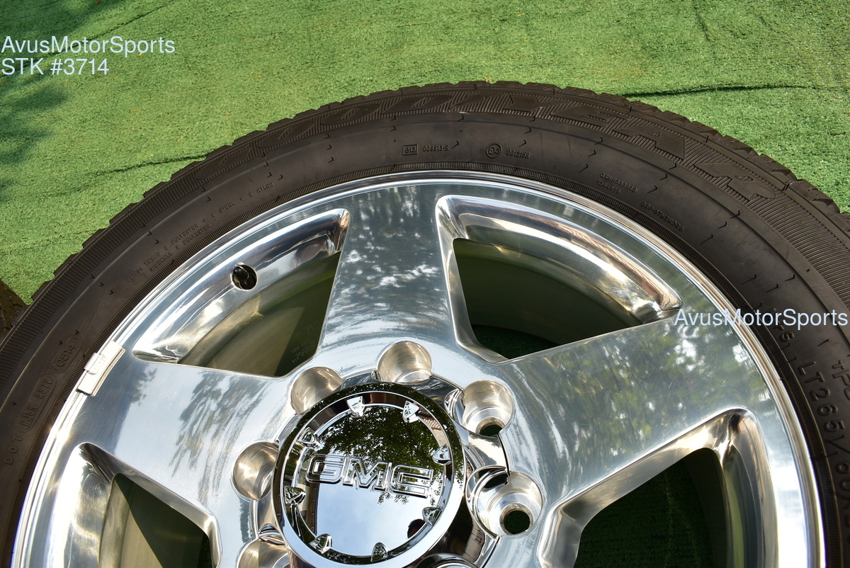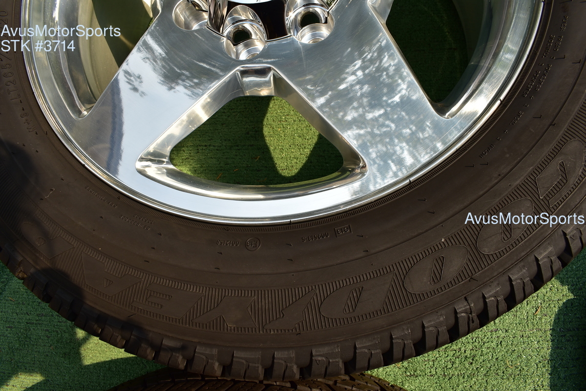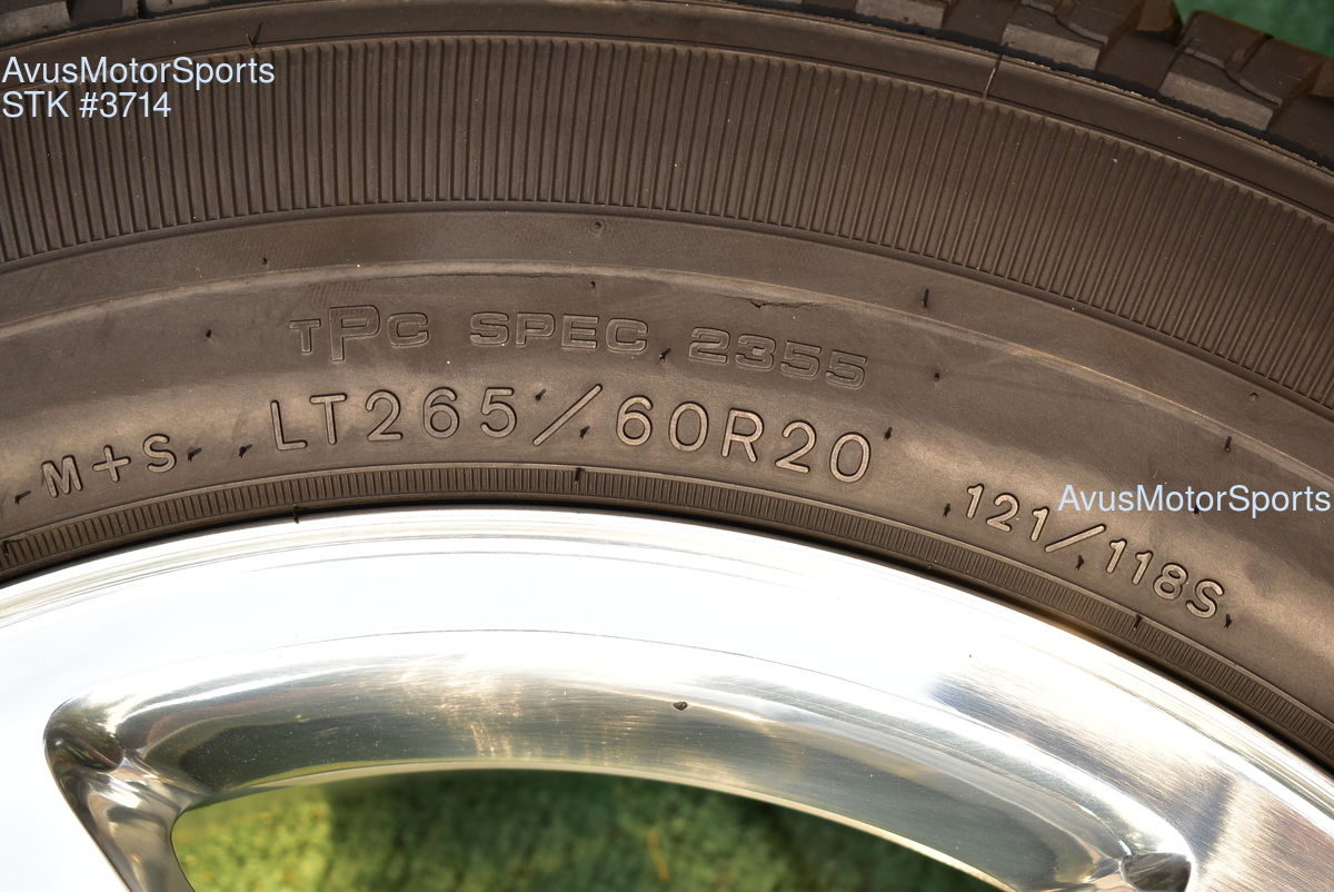 This listing is for a set of (4) 2014 GMC Sierra HD 2500 20" OEM genuine factory wheels NOT REPLICA with Goodyear LT265/60R20 tires.